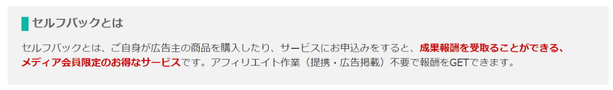例えば、A8.netでは『セルフバック』という名称だったりします。